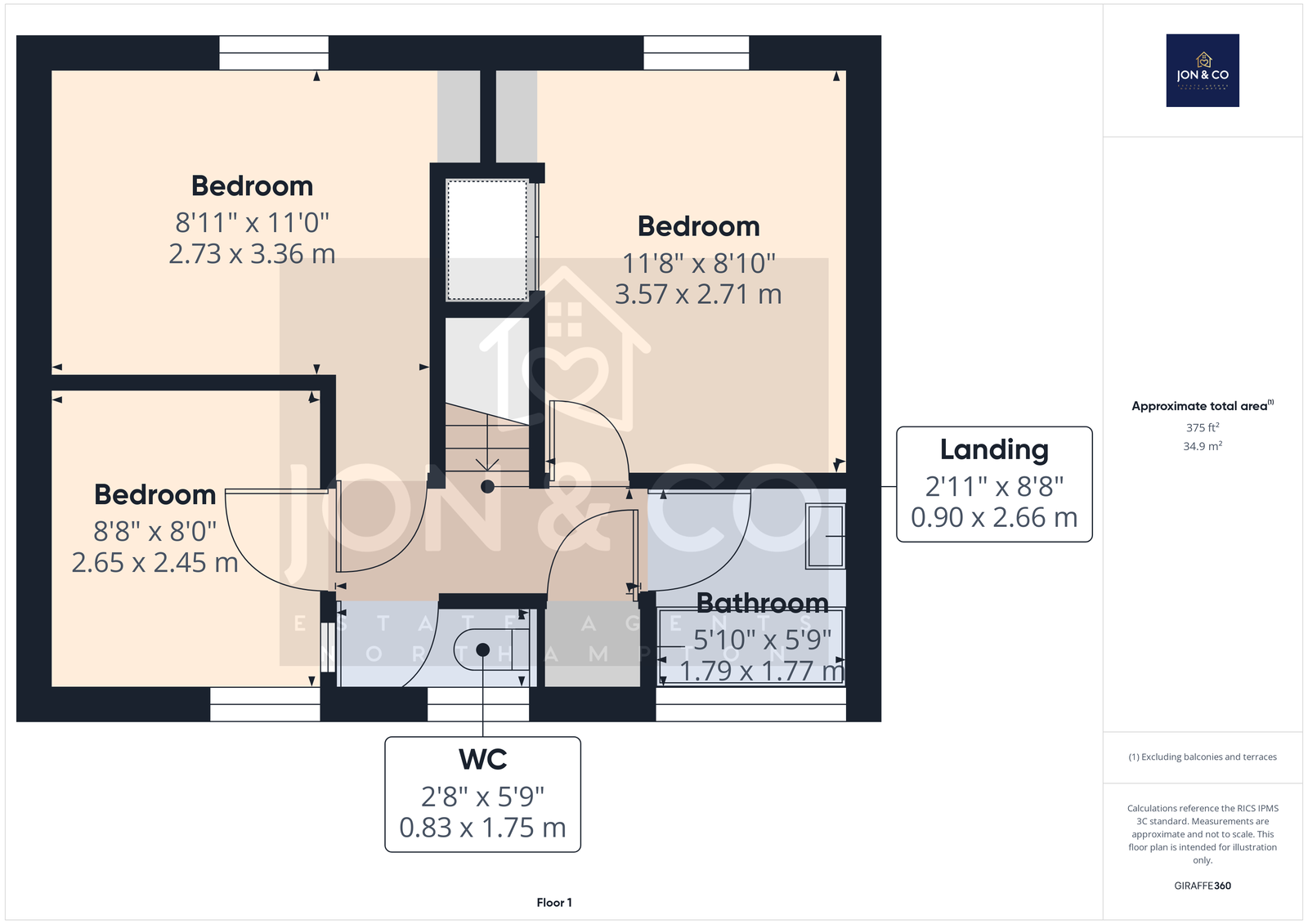 Bedroom: 3.57 m x 2.71 m (11'8" x 8'10")