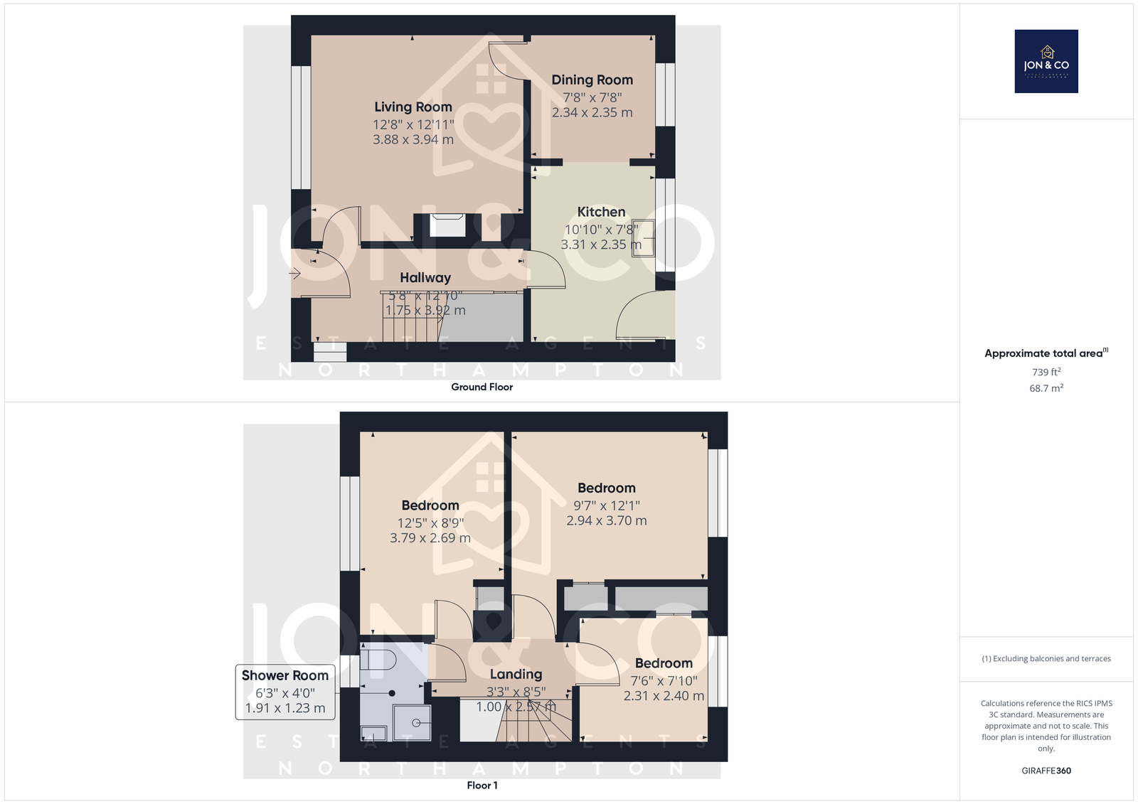 Upstairs offers three bedrooms (two doubles and one single) along with a shower room and landing area.