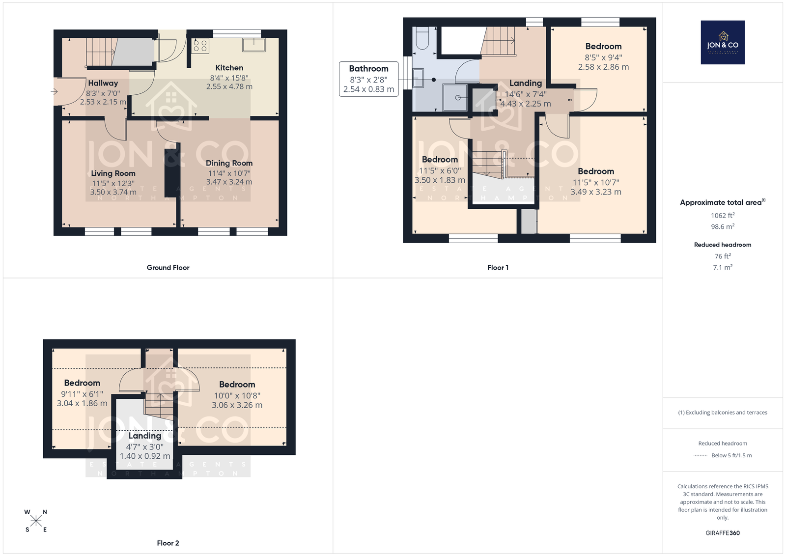 Shower Room: 2.54 × 0.83 m (8'3" × 2'8")