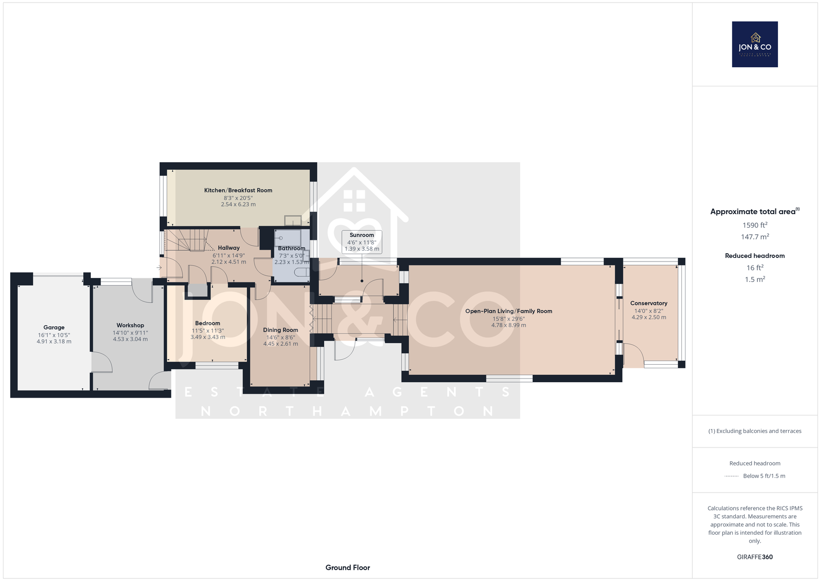 Externally, the home benefits from a private, sunken courtyard garden to the rear—perfect for relaxing or entertaining. A driveway provides off-road parking for three vehicles and leads to a double garage, currently arranged with one half serving as a workshop or additional storage.