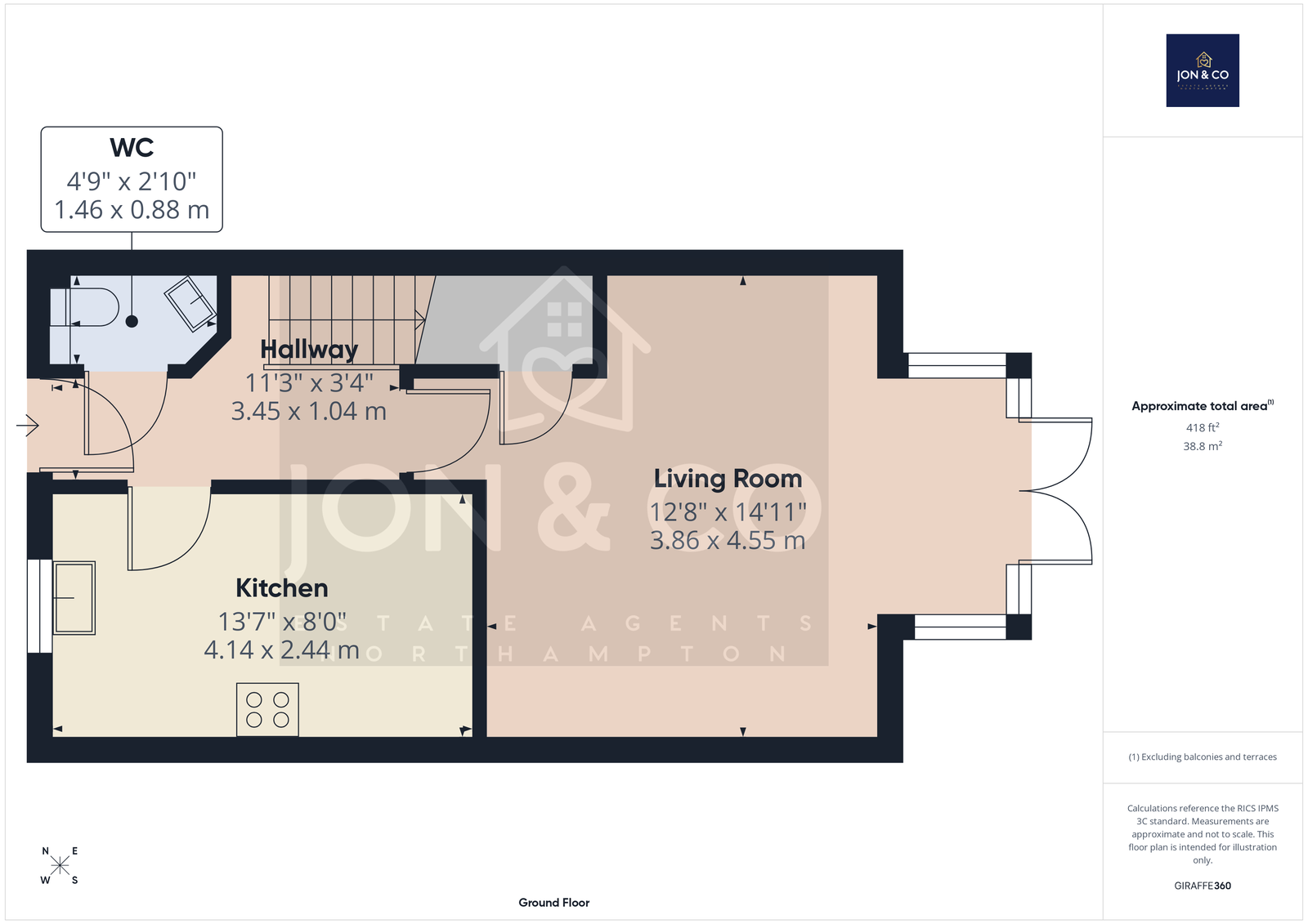 The ground floor comprises a fitted kitchen to the front elevation, a useful downstairs WC, and a generously proportioned living room to the rear with French doors opening directly onto the garden, creating a bright and functional reception area with an easy connection to the outside.