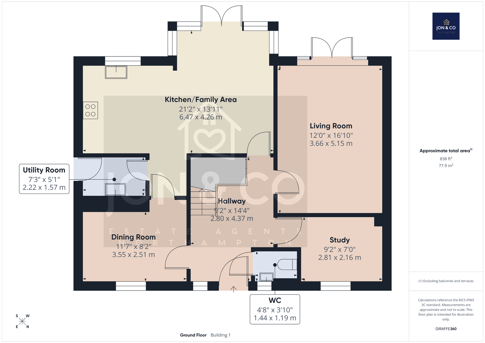 Further ground floor accommodation includes a spacious living room, separate dining room ideal for entertaining, a private study perfect for working from home, a utility room, and a cloakroom.