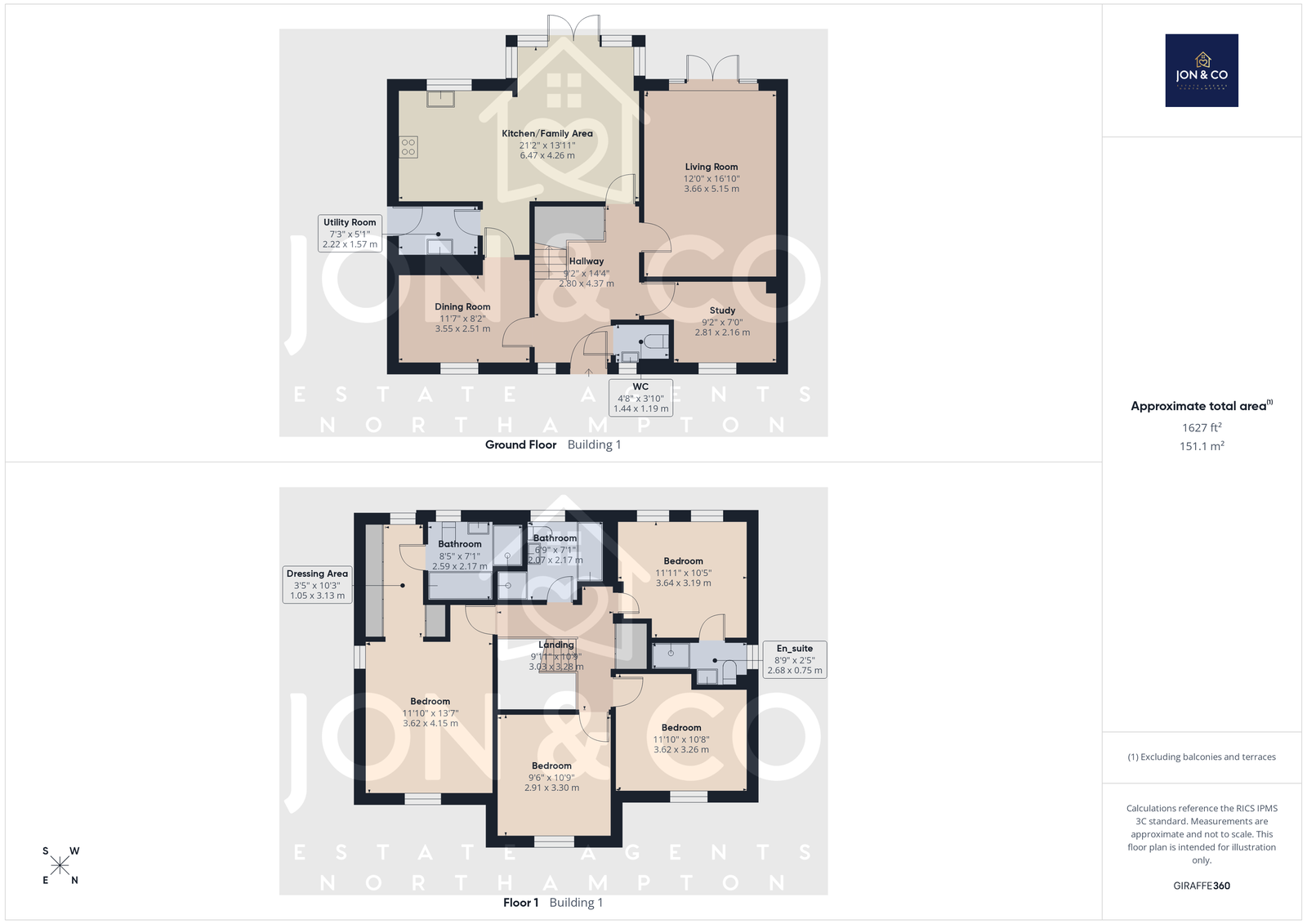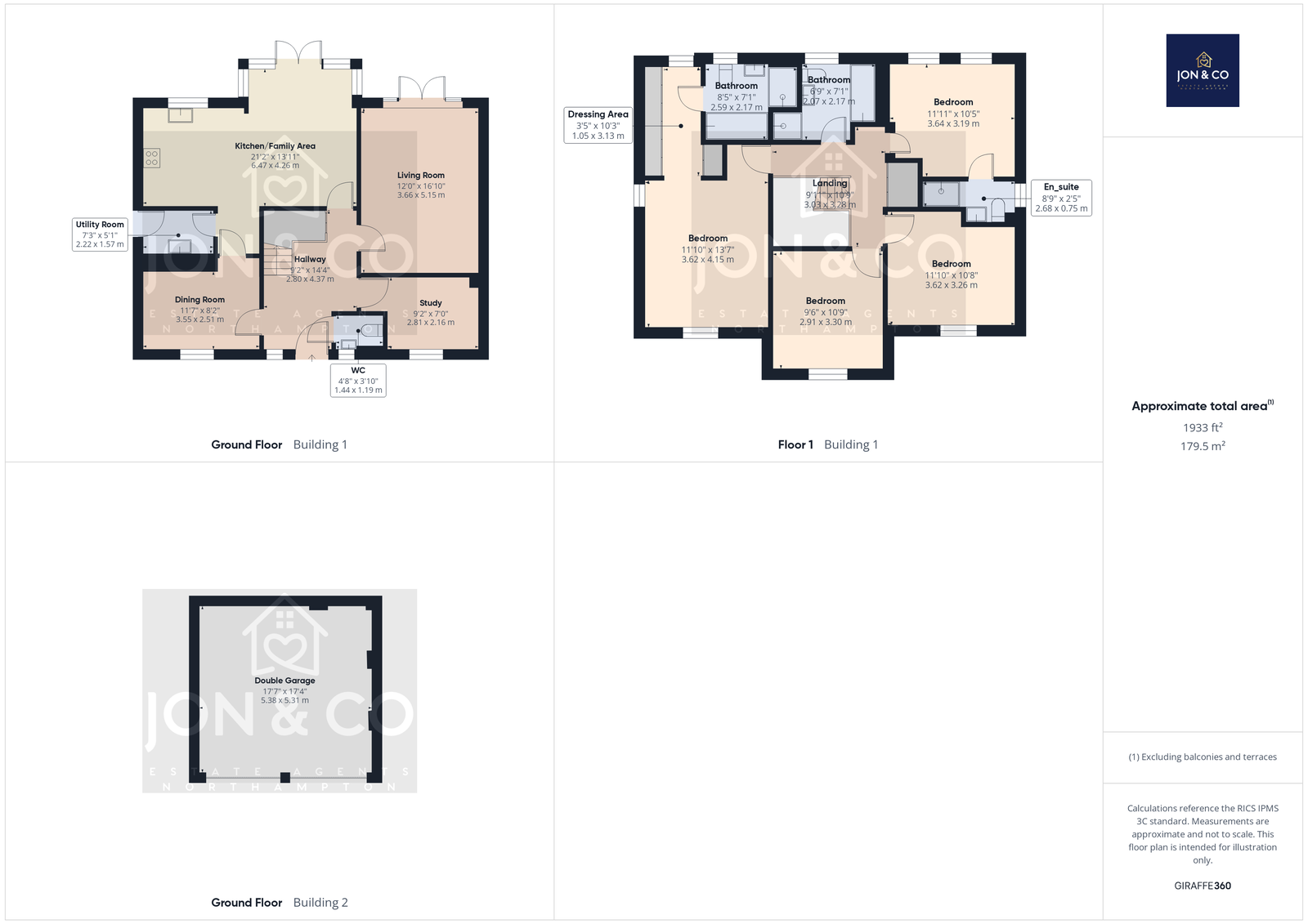 Upstairs, the main bedroom suite is particularly impressive, featuring a fitted dressing area and a full en suite bathroom. Bedroom two also benefits from its own en suite, while two further generous double bedrooms are served by a modern family bathroom.