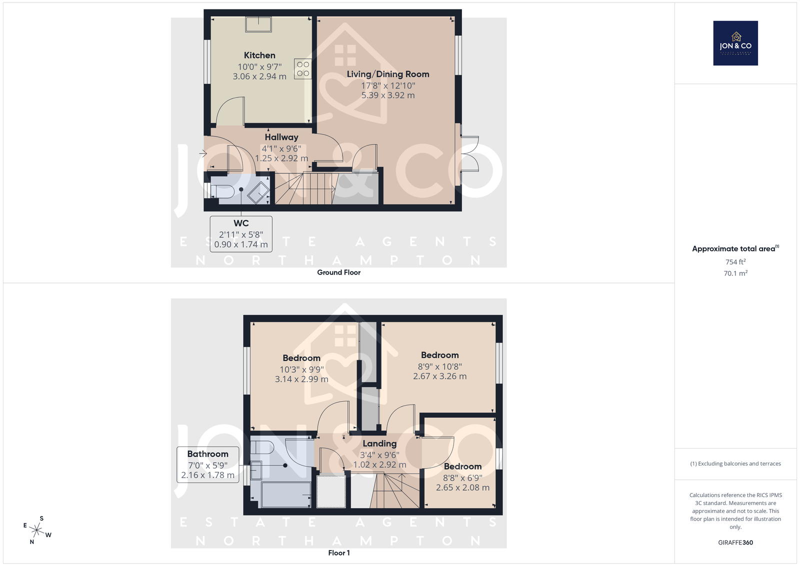 Upstairs, there are three bedrooms, including two comfortable doubles and a third ideal as a nursery, home office or guest room. A family bathroom serves all bedrooms, arranged off a central landing.