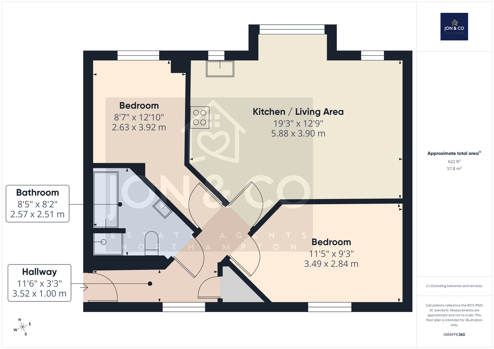 Kitchen / Living Area: 5.88 × 3.90 m (19'3" × 12'9")