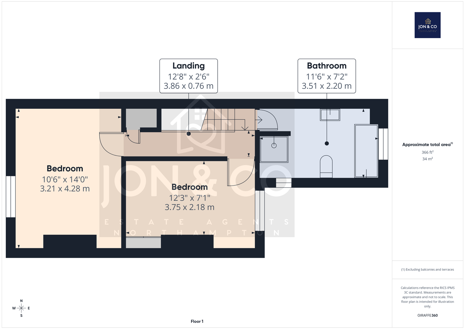 Bedroom 1: 3.21 × 4.28 m (10'6" × 14'0")